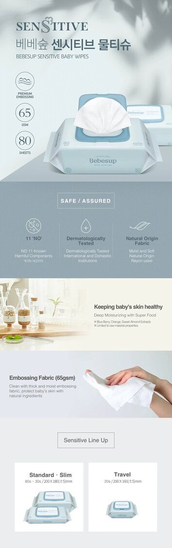 Bebesup-韓國新生嬰兒手口濕紙巾敏感肌系列80片X10包 [原箱特價]