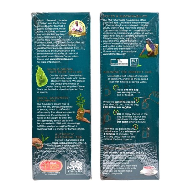 優質錫蘭紅茶,精緻平衡的豐富度、風味、濃度和香氣,成就一杯完美的茶。我們的優質茶來自單一產地;斯里蘭卡中部高地,以其明亮和中等強度而聞名。純錫蘭碎橙白毫茶 (BOPF) 沖泡的茶口感宜人,茶水顏色呈半透明的紅棕色讓人聯想如同雪利酒的顏色一般、茶水並將發出如蜂蜜般的香氣,略帶麥色與瓜果香,此茶口味實為紅茶中的最高極至,非常適合日常飲用。Dilmah優質錫蘭紅茶系列讓茶愛好者欣賞真正的錫蘭茶的浪漫氣息。