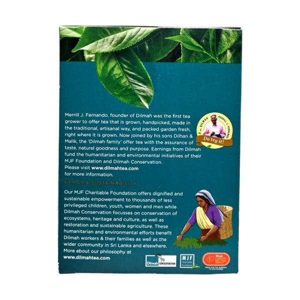優質錫蘭紅茶,精緻平衡的豐富度、風味、濃度和香氣,成就一杯完美的茶。我們的優質茶來自單一產地;斯里蘭卡中部高地,以其明亮和中等強度而聞名。純錫蘭碎橙白毫茶 (BOPF) 沖泡的茶口感宜人,茶水顏色呈半透明的紅棕色讓人聯想如同雪利酒的顏色一般、茶水並將發出如蜂蜜般的香氣,略帶麥色與瓜果香,此茶口味實為紅茶中的最高極至,非常適合日常飲用。Dilmah優質錫蘭紅茶系列讓茶愛好者欣賞真正的錫蘭茶的浪漫氣息。