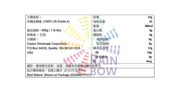 Kirkland Signature 有機生蜂蜜是100%純淨,無加熱,未過濾,未加工(保留多種酶,維他命,礦物質及所有的營養成分)。生蜂蜜純淨,作為功能行食品,提供最大程度的天然抗氧化及修復成分。生蜂蜜自然結晶,富含能量,真正的自然狀態。Kirkland Signature有機蜂蜜從不強制加工成奶油狀。生蜂蜜來源由健康環境中的健康蜜蜂。
