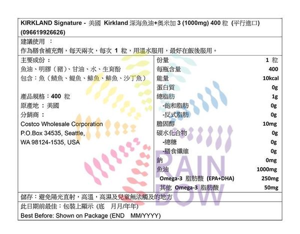 Kirkland Signature-深海魚油+奧米加3 (1000mg) 400粒 EXP:2027年9月底(平行進口) (26626)