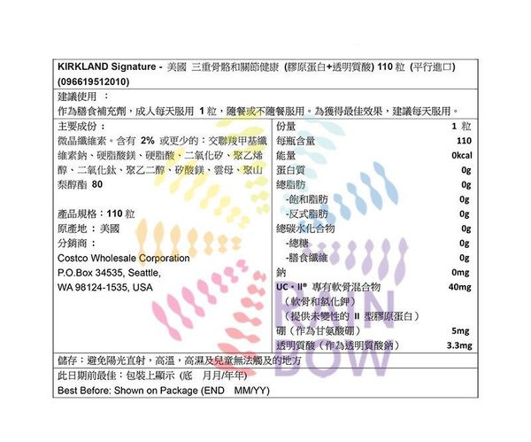 Kirkland Signature-三重骨骼和關節健康 (膠原蛋白+透明質酸) 110粒 EXP:2028年8月底(平行進口) (12010)