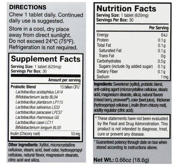 豐富的天然輔助吸收因子幫助身體吸收營養成分,不會對腸胃造成負擔,且不含糖份、防腐劑及主要致敏源,天然莓果味,不含蔗糖,低熱量,健康美味;另添加益生元,為益生菌提供營養,維持其活躍度,確保不受胃酸影響。