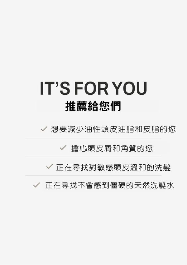 使用植物性來源的成分來達到深層清潔,根除造成頭皮膚產生及發癢的主要原因