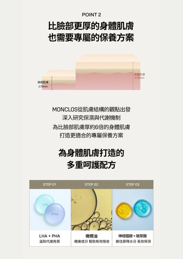 為比臉部肌膚厚約6倍的身體肌膚 打造高效產品