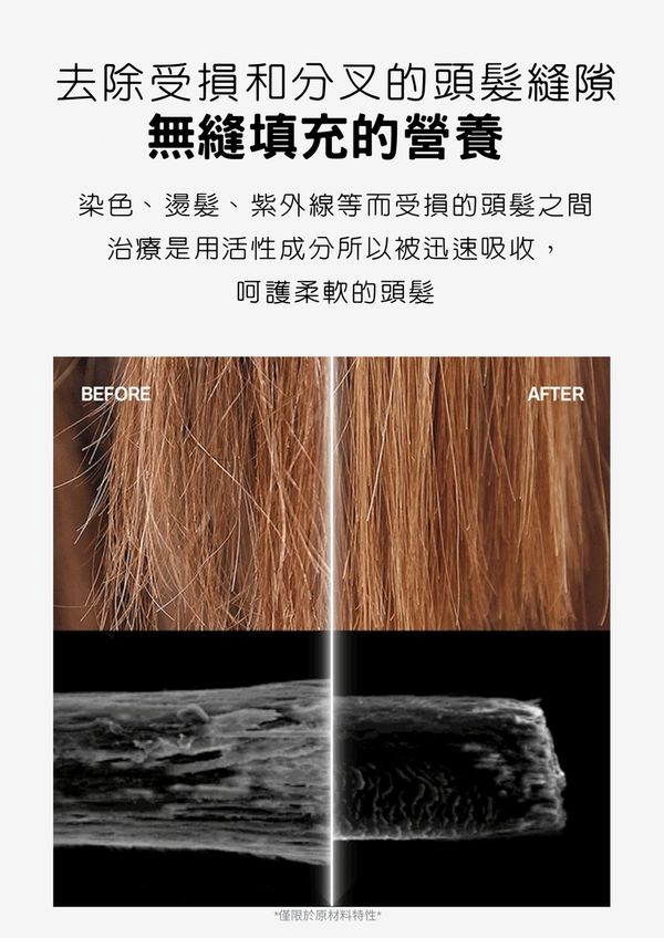 一次解決受損髮質 乾燥 缺乏光澤為髮絲打造 堅強屏障