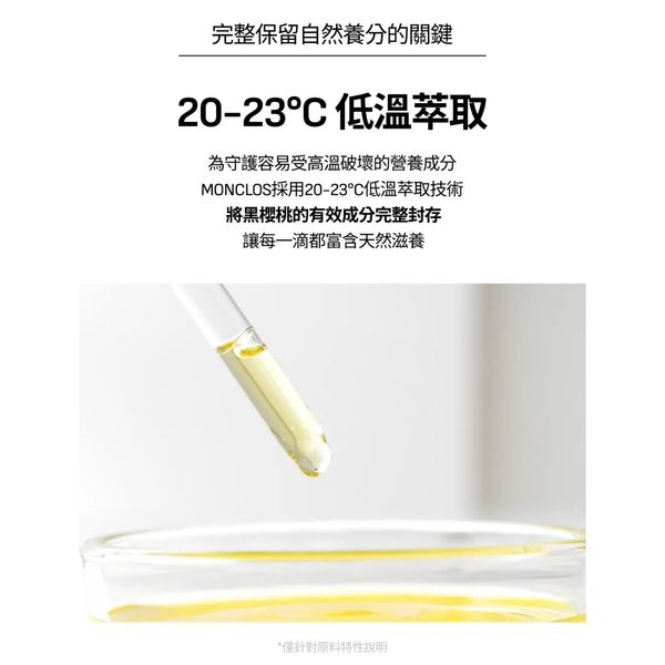 低溫萃取技術(20–23°C):完整保留黑櫻桃精華活性,每一滴都是天然呵護。