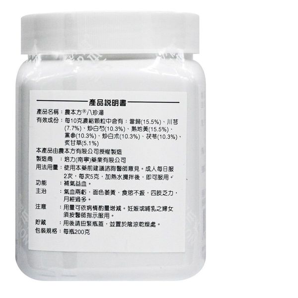 農本方- 八珍湯 (2001) 200g 此日期前最佳:2028年8月