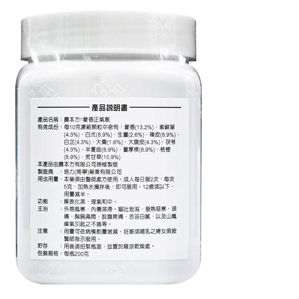 農本方- 藿香正氣散 (2018) 200g 此日期前最佳:2028年4月