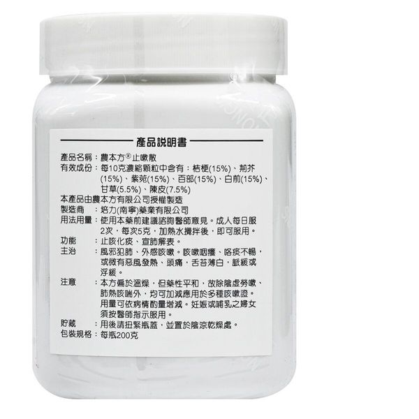 農本方- 農本方 止嗽散 (2025) 200g到期日2028年7月