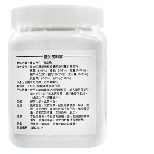 農本方- 小青龍湯 (2044) 200g 此日期前最佳:2028年7月
