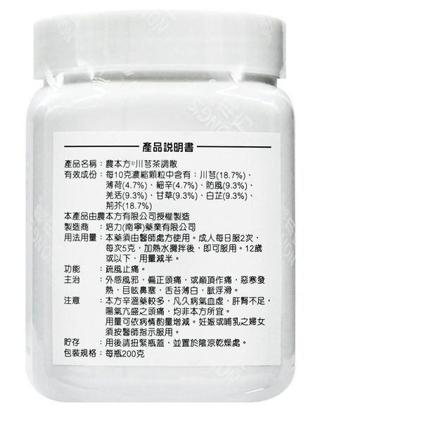 農本方- 川芎茶調散 (2053) 200g 此日期前最佳:2028年7月