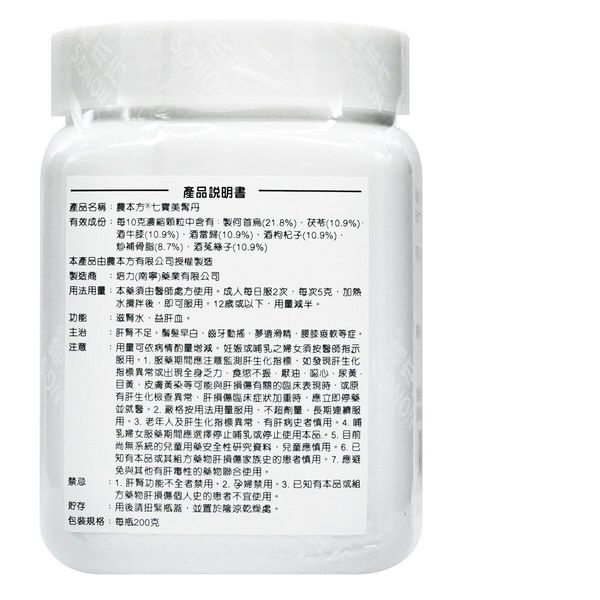 農本方- 七寶美髯丹 (2274) 200g 此日期前最佳:2028年3月