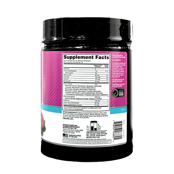 混合 ESSENTIAL AMIN.O。能量 + 電解質,在您想要增強能量、肌肉恢復和電解質支持的任何時候。只需將 2 匙與 300 至 350 毫升水混合,即可在您需要時隨時補充水分、恢復活力。每份提供 100毫克來自天然來源的咖啡因,以支持能量和注意力,以及 5克氨基酸,以支持肌肉恢復,加上電解質以幫助補充因汗水流失的物質。