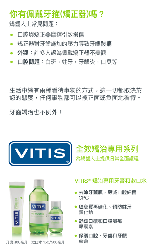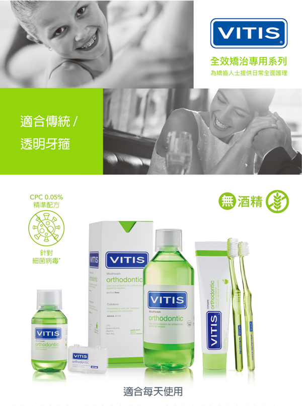 *建議配合VITIS® CPC 漱口水(全效矯治) 一起使用,加強潔淨及保護功效。